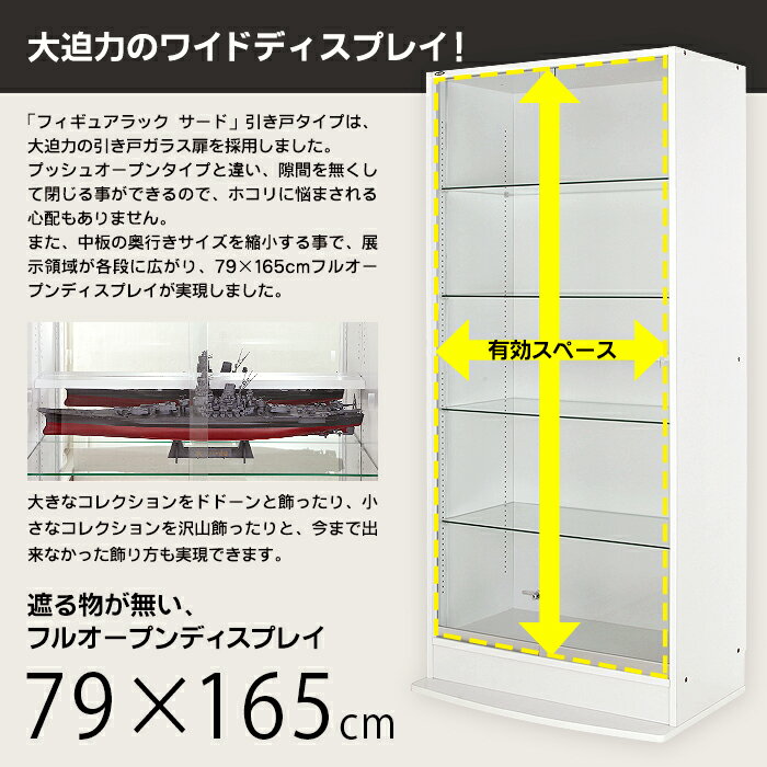4点セット JAJAN フィギュアラック サード ワイド 引き戸 幅83cm 奥行39cm (ハイタイプ本体+ホワイトLED+背面ミラー+上置ハイ) コレクションケース コレクションラック コレクションボード