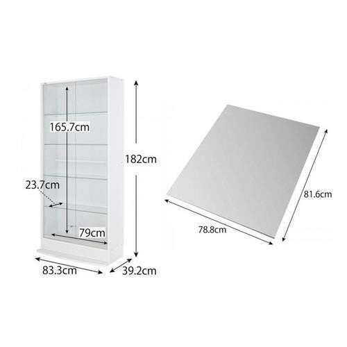 両開きハイタイプ:奥行39cm<製品サイズ>外寸(約):幅83 奥行き39 高さ180cm 幅83 奥行き49 高さ182cm(※ボトムステージを取り付けた場合)内寸(約):上段 幅79 奥行き35.5 高さ81.8cm 下段 幅79 奥行き35.5 高さ81.8cm ガラス棚 幅78.7 奥行き33.7 厚さ0.5cm 6枚 <製品重量>(約)68kg<ガラス可動棚枚数>6枚(1.5cmピッチで調整可能)<耐荷重>ガラス可動棚一枚あたり:5kg<材質>本体:プリント紙化粧繊維板MDF扉:5mm強化ガラス棚板:5mm強化ガラス<梱包サイズ・重量>1/4:46.7 187.7 5.5cm・17kg2/4:62.6 99.7 10cm・17kg3/4:84.7 87.5 5.7cm・23kg4/4:84.7 87.5 5.7cm・23kg<生産国>インドネシア※お客様組立品※LEDモジュールの仕様は下記参照ください。